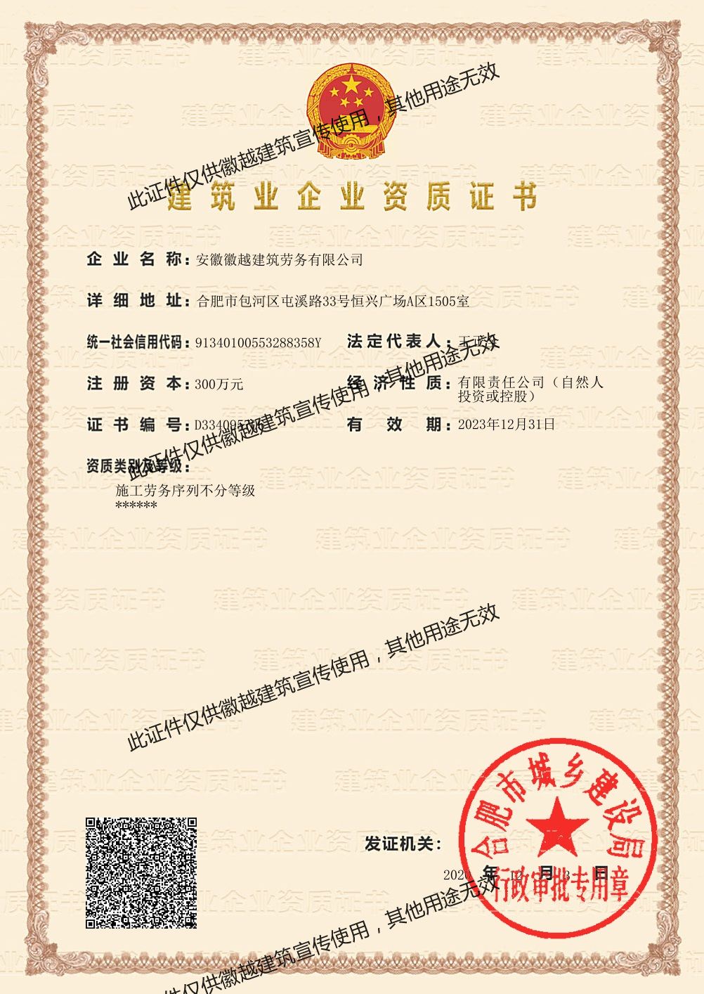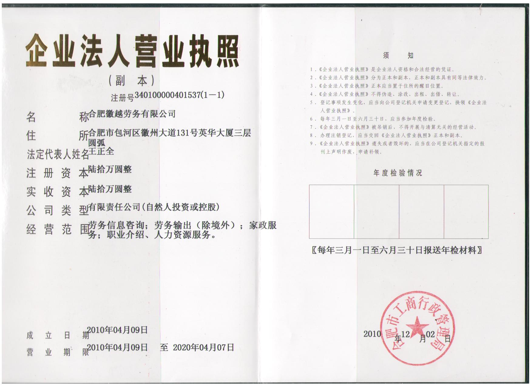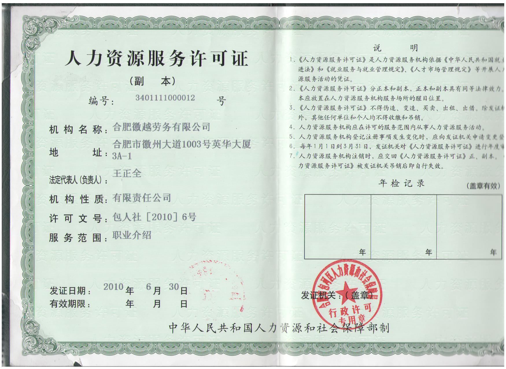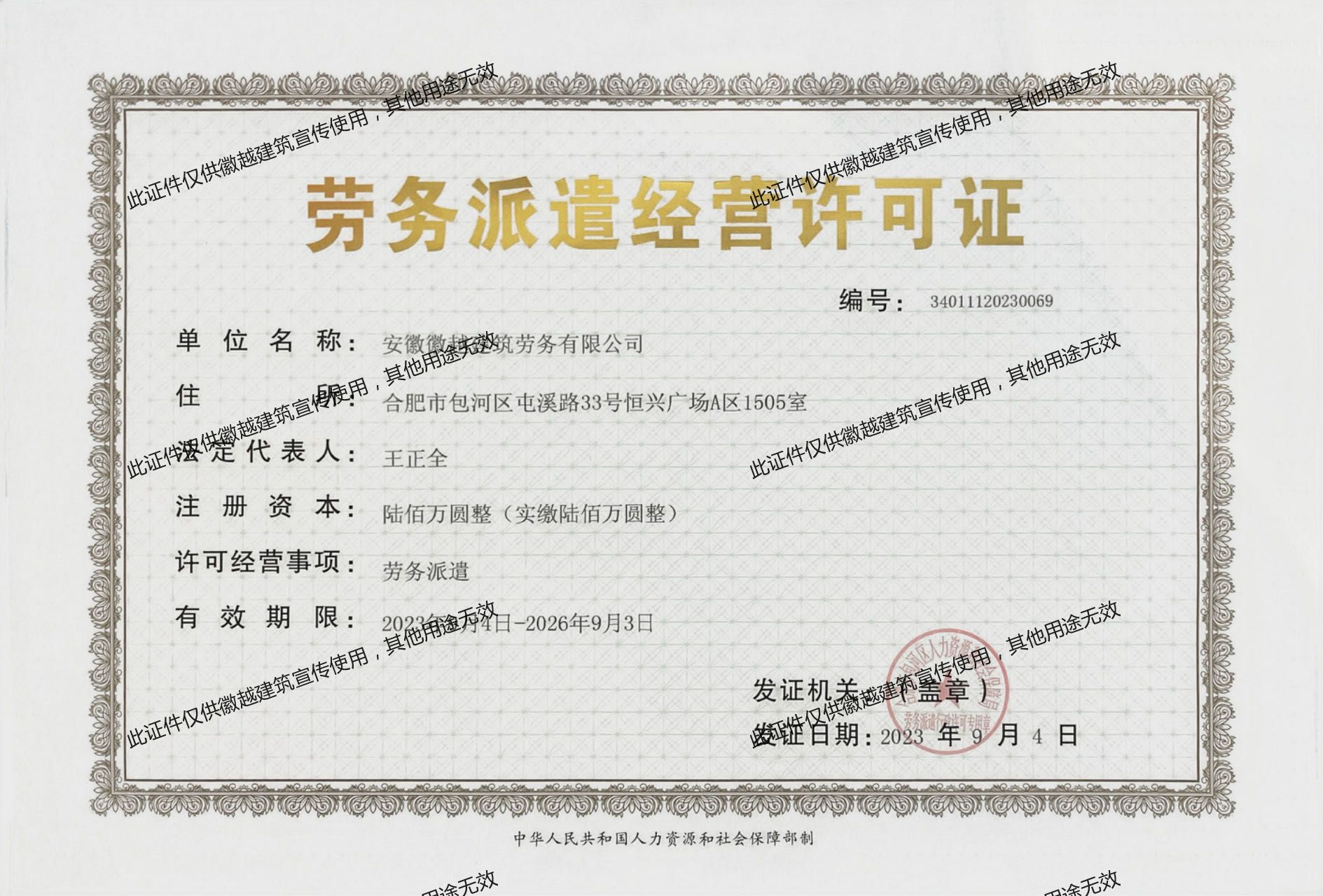 徽越公司自2008年中建總公司及多家世界500強企業(yè)授權招工資格以來,在同行業(yè)知名度信譽 度較高。徽越公司是安徽省一家經過合肥市工商行政管理局(安徽省工商行政管理局備案審核)、合肥市勞動和社會保障局及合肥市建設委員會(安徽省建設廳資質審批)審核批準成立的正規(guī)合法的且具有豐富建筑勞務輸出和項目施工管理經驗的信譽良好的勞務派遣和勞務分包...>>查看詳情